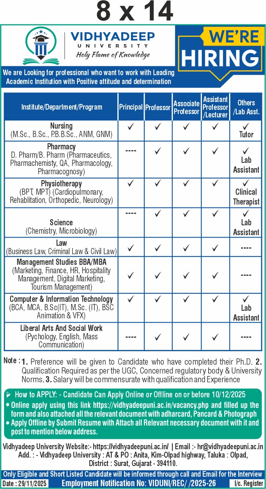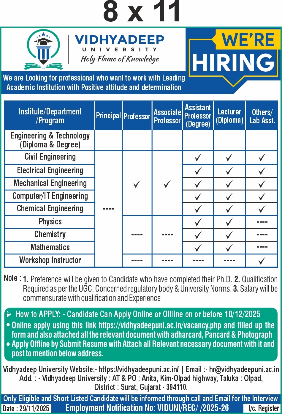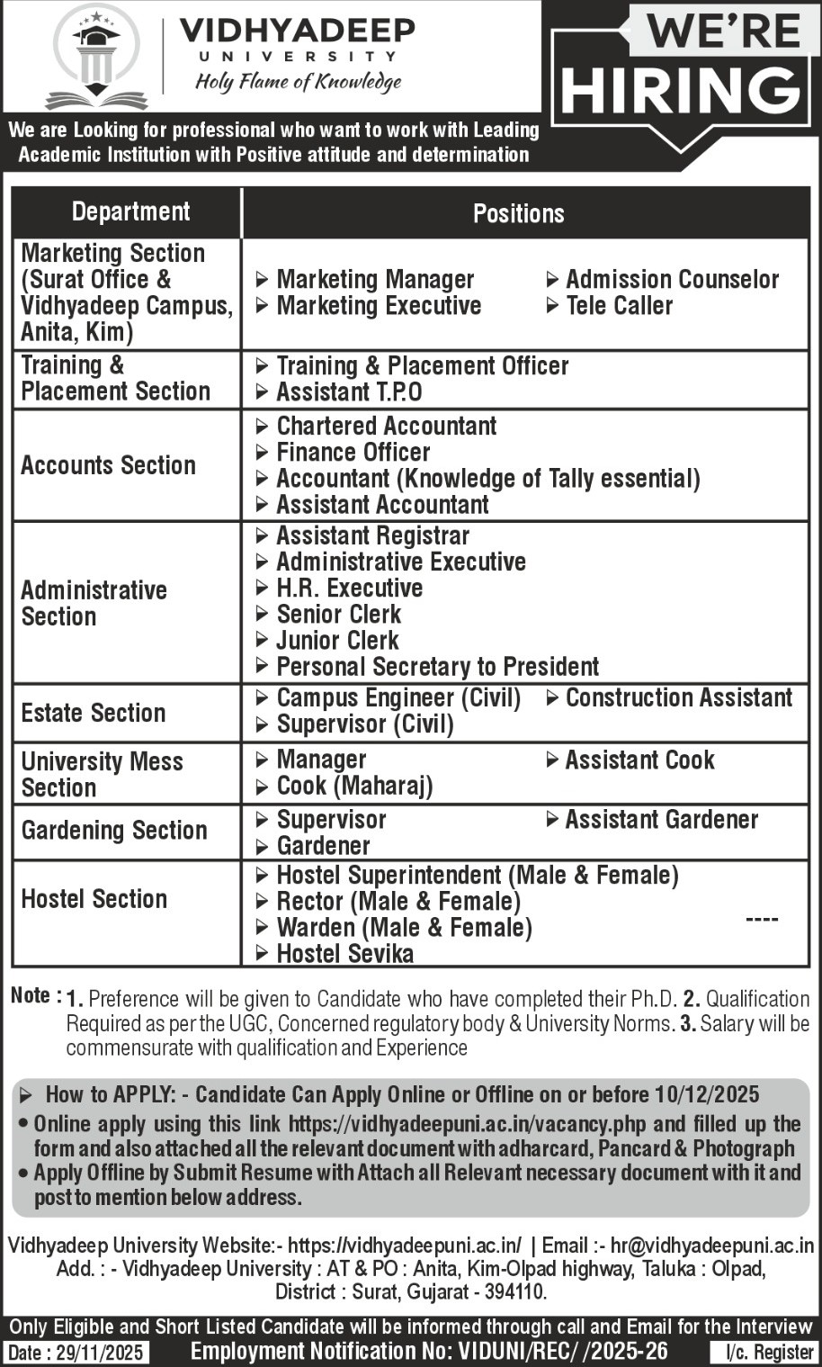 Employment Notification No.: VIDUNI/REC/24/2025-26